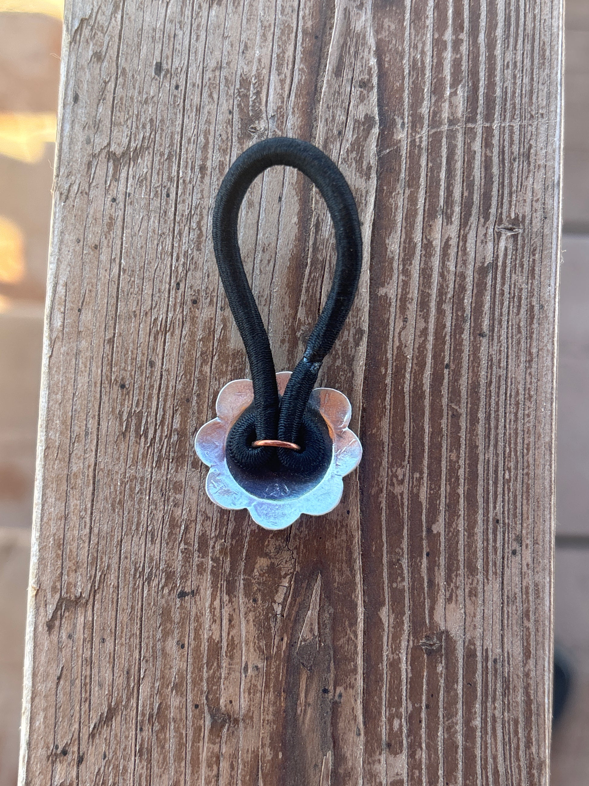 Beautiful sterling silver stamped concho hair tie. Stamping may vary.