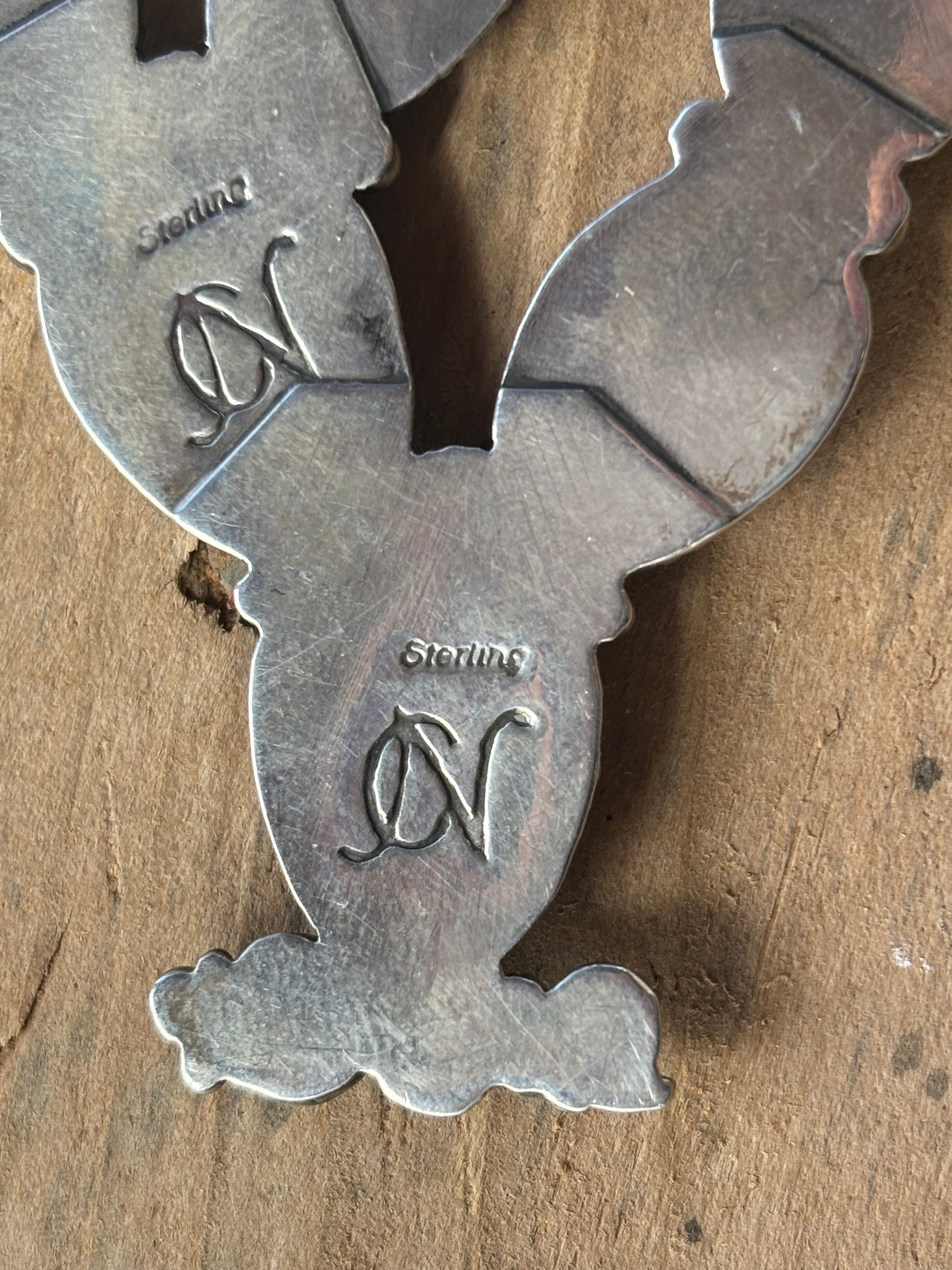 Artist Bio: Calvin Nelson (Navajo) - Calvin Nelson is a gifted silversmith and jeweler who resides in Ruidoso, NM. He learned his craft from his mother while growing up in Magdalena NM. He is of Navajo and Apache heritage and this comes through in the work that he produces.