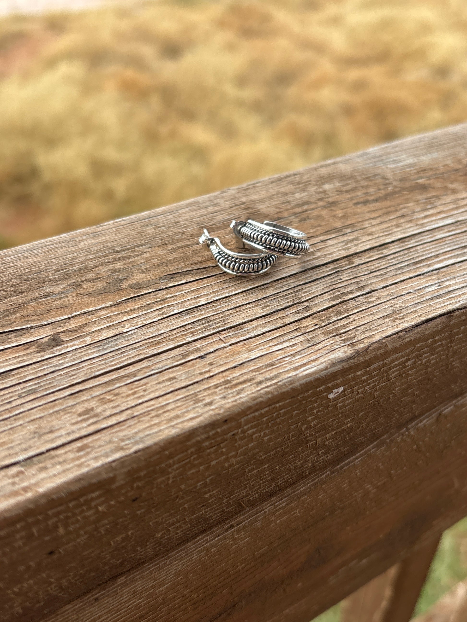 Sterling Silver handmade hoop earrings by Elaine Tahe