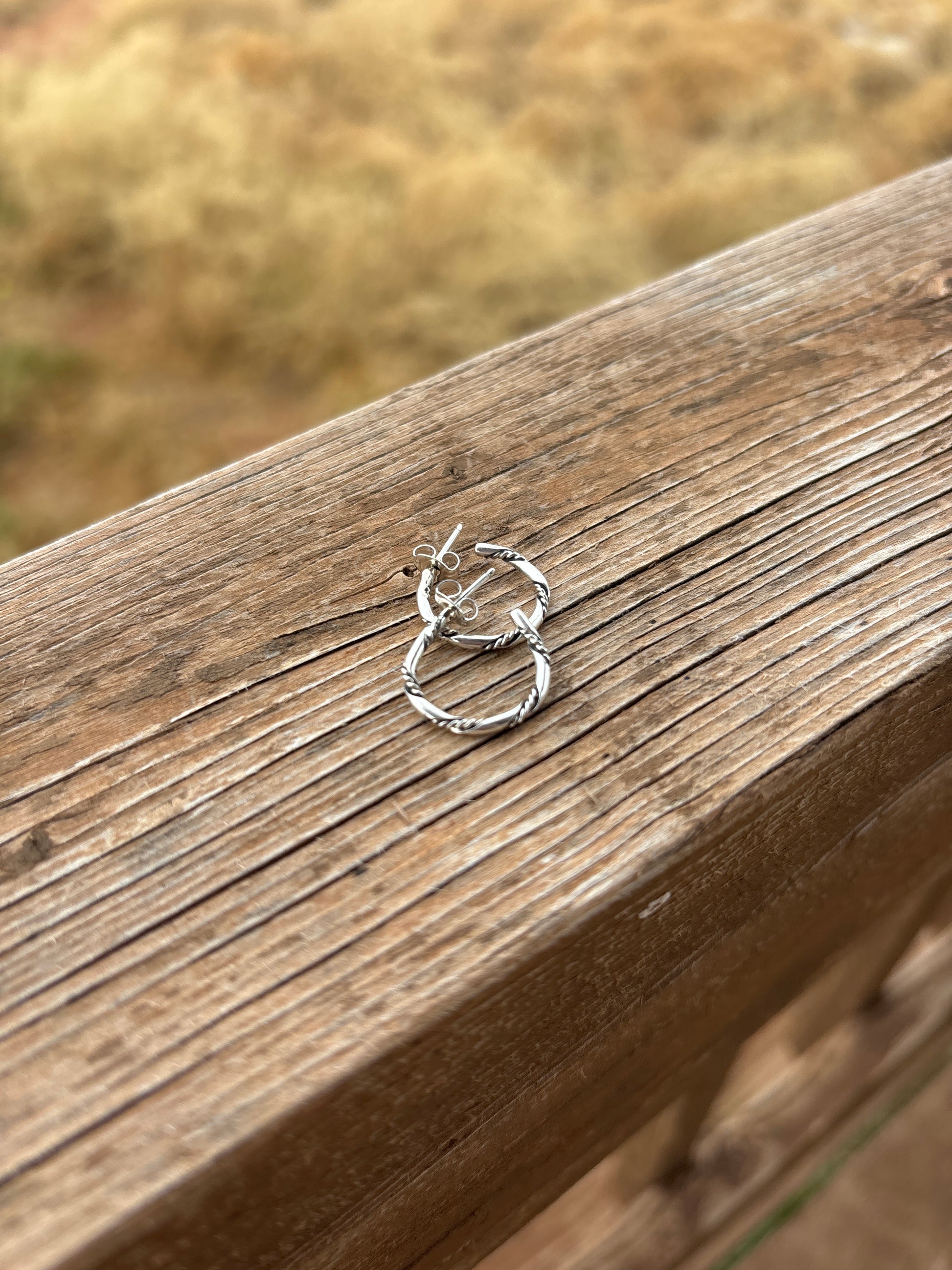 Sterling Silver handmade twist hoop earrings by Elaine Tahe