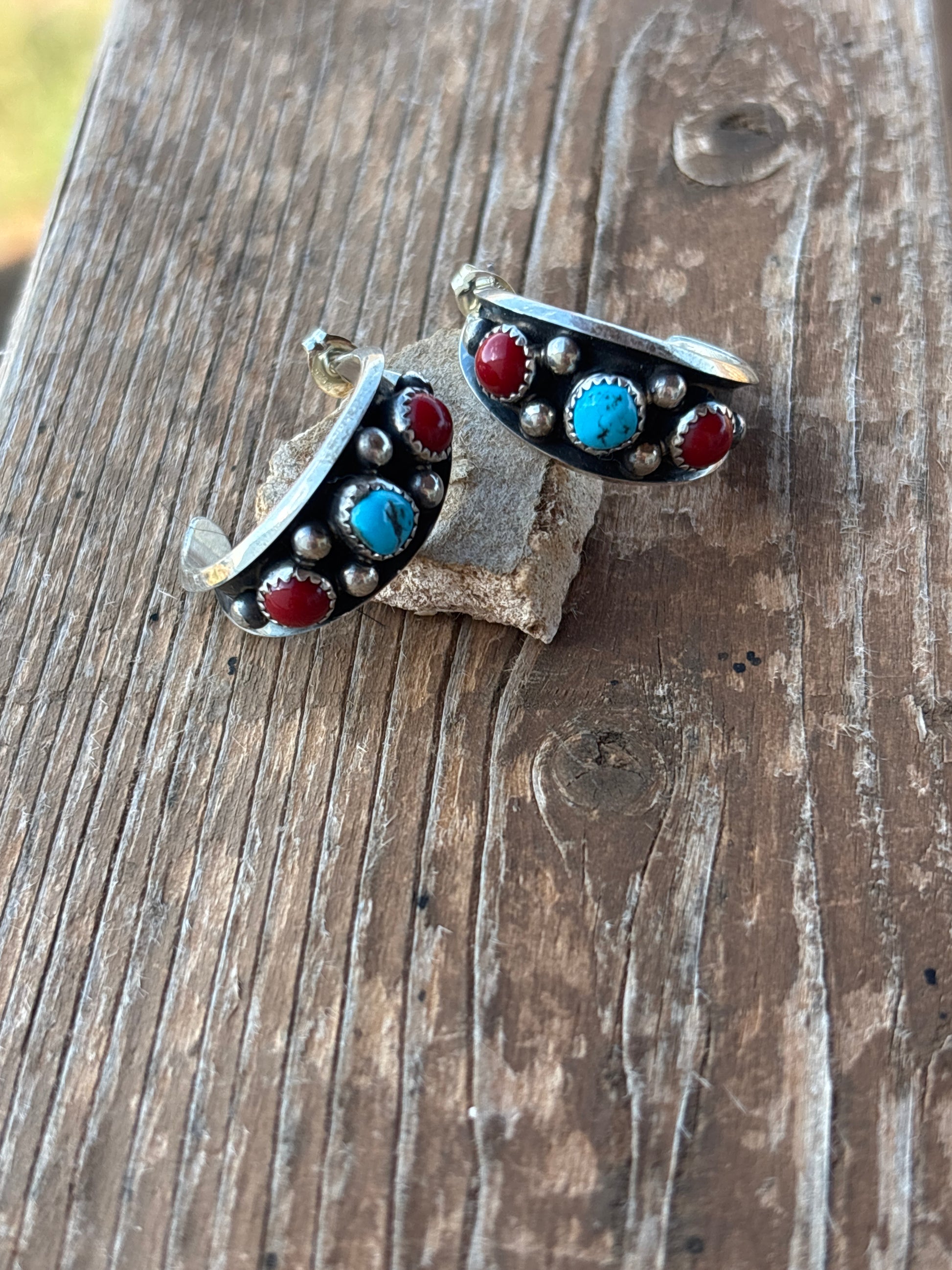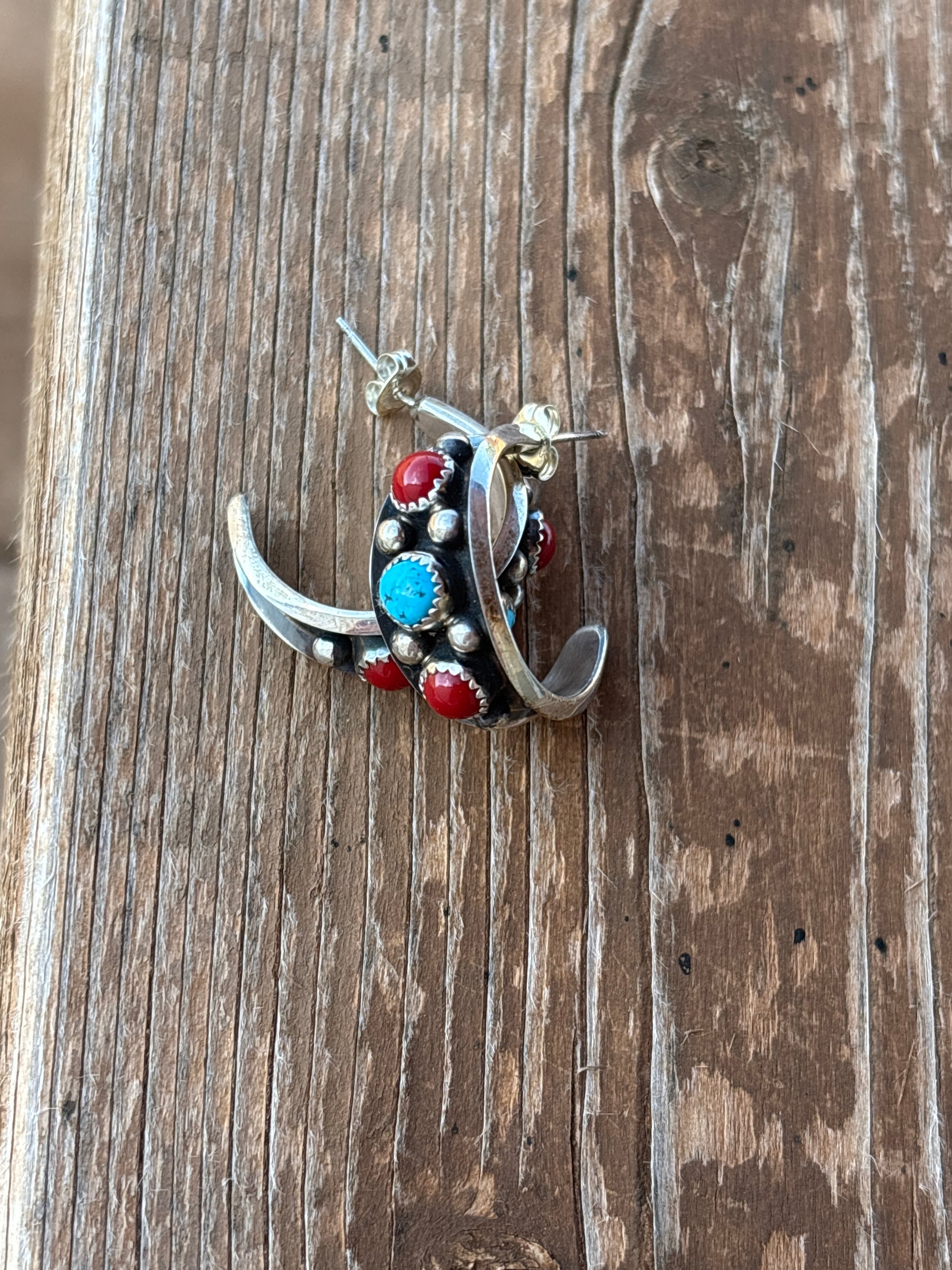 Paul Largo turquoise, coral and sterling silver earrings