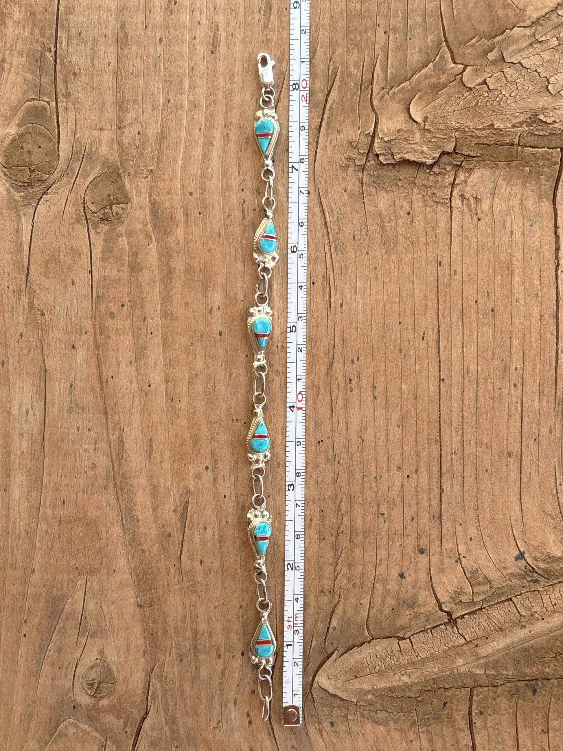 Terrance Panteah/Tammy Johnson Red Coral & Turquoise Link Bracelet 244128rb